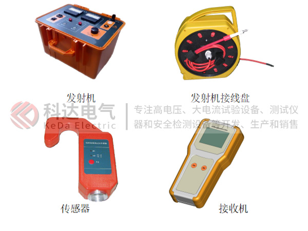 本儀器是一套便攜設(shè)備,可進(jìn)行多條線路的故障定位。整套設(shè)備由發(fā)射機(jī)、傳感器、接收機(jī)及附件組成。在故障線路停運(yùn)后,由發(fā)射機(jī)向線路施加超低頻高壓信號(hào)使故障重現(xiàn),在線路沿途用絕緣桿將傳感器掛在線路上檢測(cè)信號(hào),并通過無線方式向地面上的接收機(jī)傳輸數(shù)據(jù),接收機(jī)顯示測(cè)量結(jié)果。在故障點(diǎn)前,電流持續(xù)存在,故障點(diǎn)后,電流消失??上冗M(jìn)行粗略分段,再精確定點(diǎn),從而快速確定故障位置。